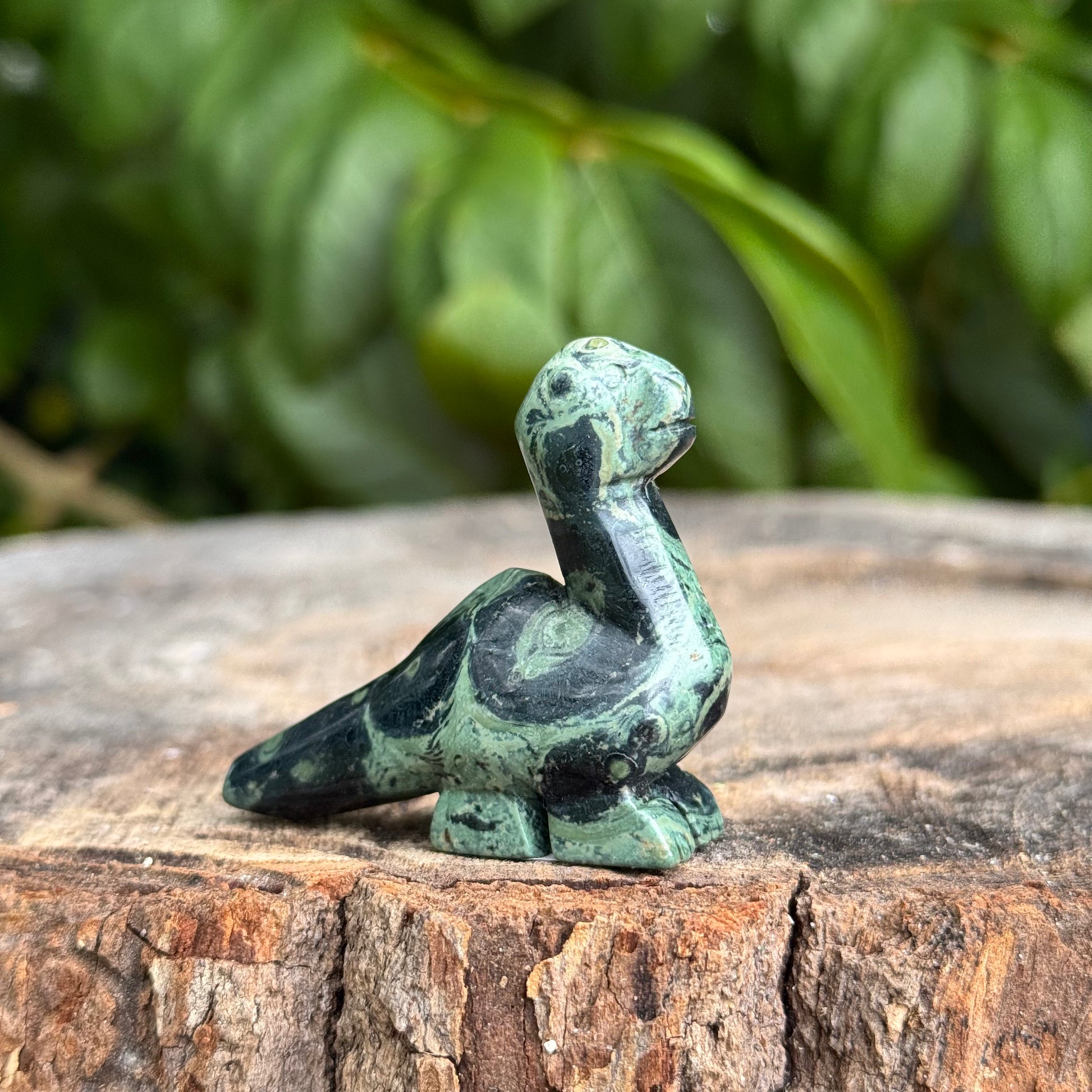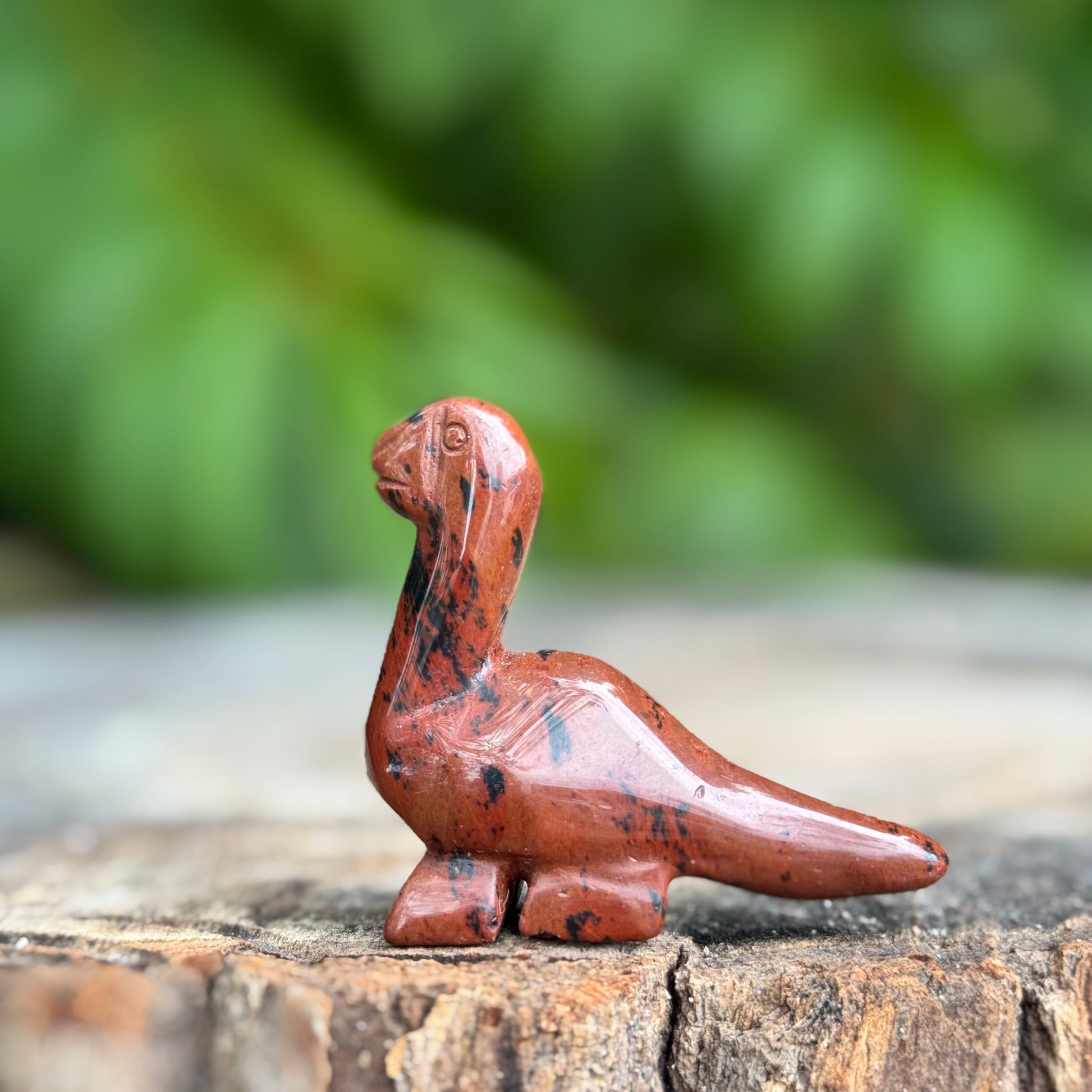 Want an adorable miniature carving of a dinosaur in your home, or to gift to a loved one? Dinosaurs represent ancient wisdom and the enduring truths of existence. Get yours today in crystals rose quartz, tigers eye, green aventurine, black obsidian & carnelian.